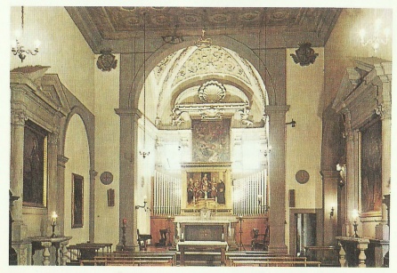 sull'altare Madonna in trana e santi, tavola di scuola florentina del sec. XVI che sostltulsca la farnosa "Tela de' Magnoli" di Domenico Veneziano oggi agli Uffizi, documentata in una rlproduzione posta sulla controfacciata.