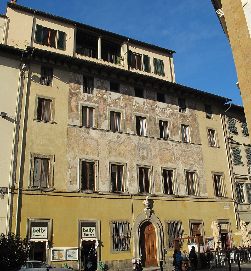 Nel 1575 nel suo Diario Agostino Lapini descrive le prime facciate dipinte che si realizzarono a Firenze, e ricorda quella di questo palazzo "come ....la piu' bella".