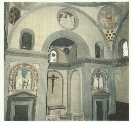 Dal transetto sinistro si accede alla Sagrestia Vecchia, connessa strettamente al progetto brunelleschiano per la basilica (1420-29), originale espressione della nuova architettura